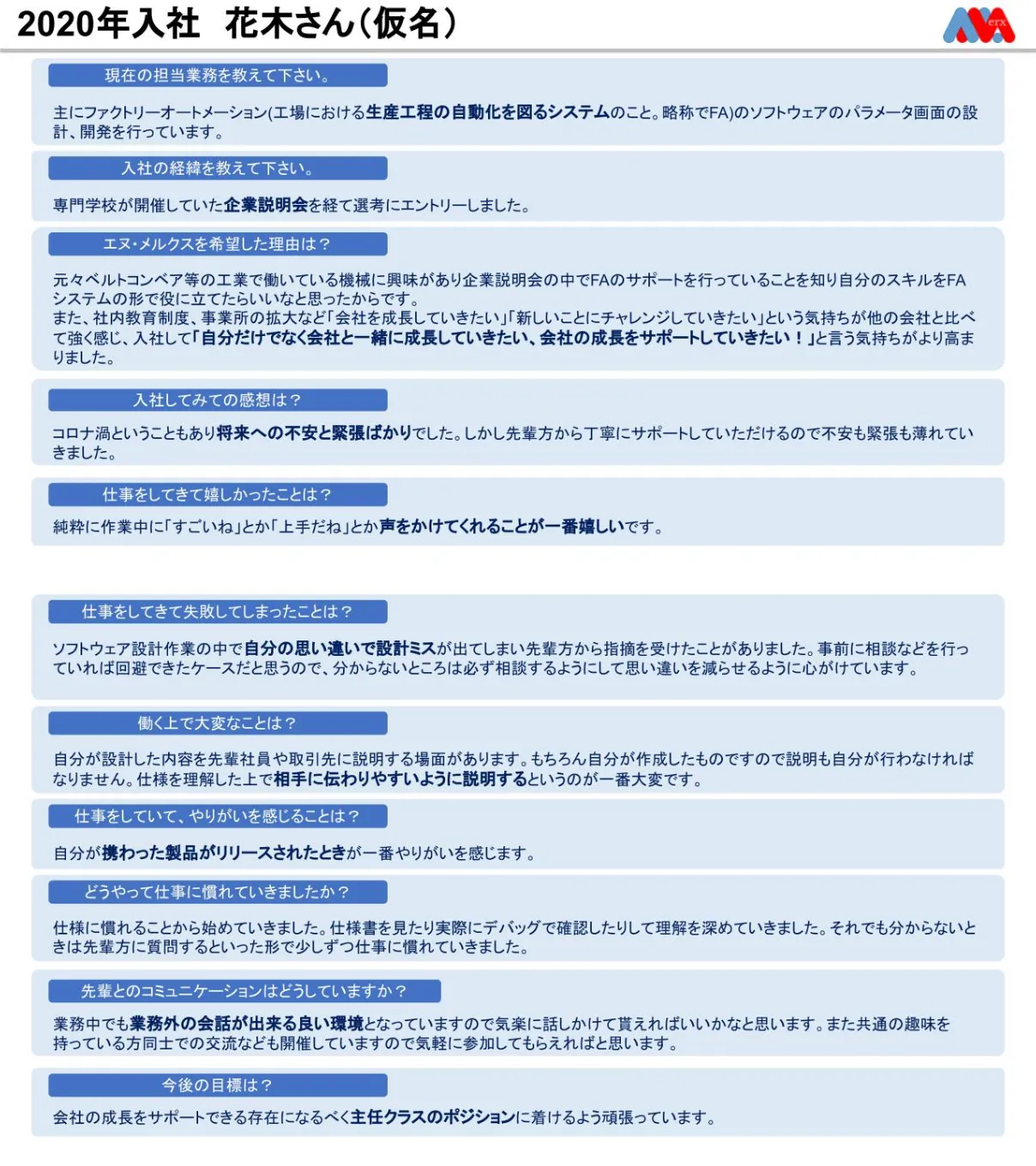 エヌ・メルクスでは、会社が「働きやすい」環境を提供し、その中で社員一人一人が「働きがい」を追求できることを理想として、社員一人一人に寄り添ったさまざまな取り組みを行っています。
